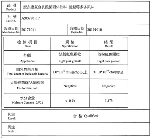 品名:蜜亦康复合乳酸菌固体饮料 蔓越莓多多風味