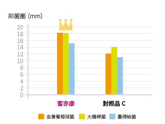 ♠ 抑制圈平盤實驗 及 菌數培養實驗:蜜亦康和其他對照品實力比拼,黃金秘密六菌有效保持好菌平衡!